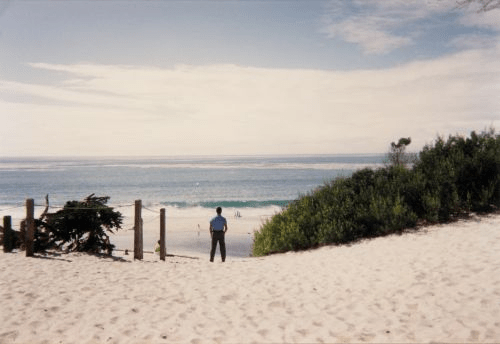 Sitting by the Monterey bay alone.