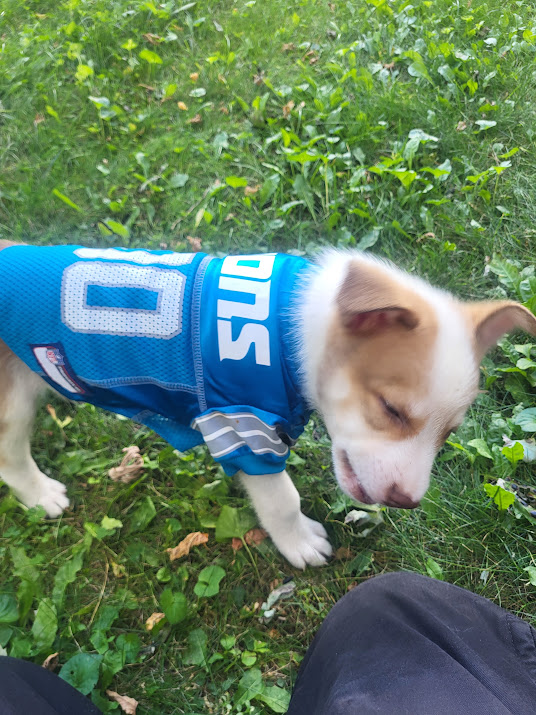 I got a new puppy. Three months old on the 19th of October. He is a solid Lion’s fan.